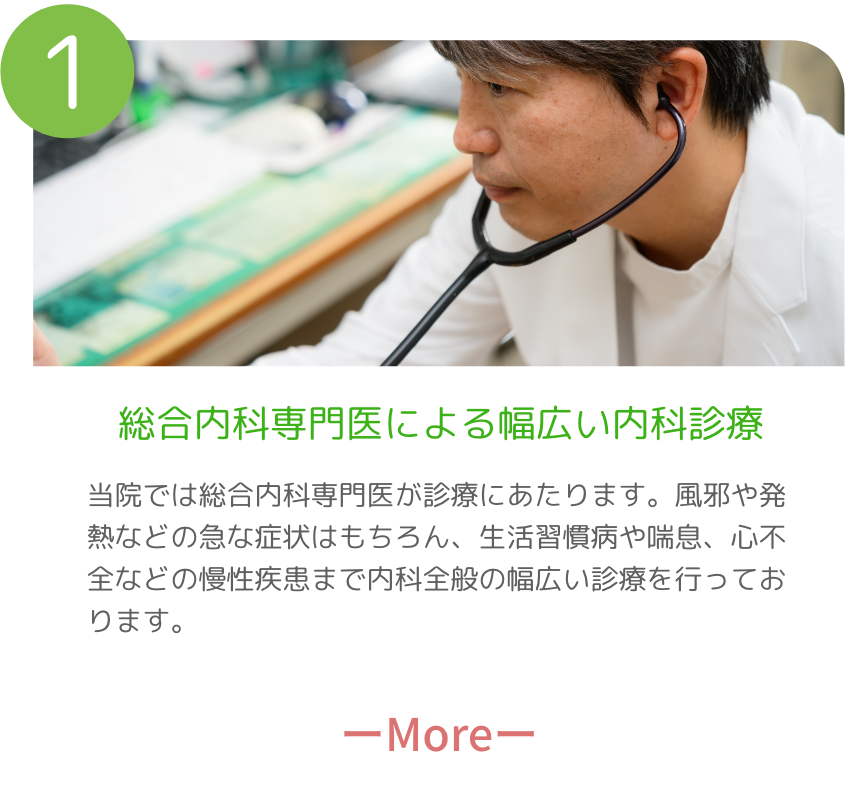 当院では専門医が内科疾患全般に対応しております。