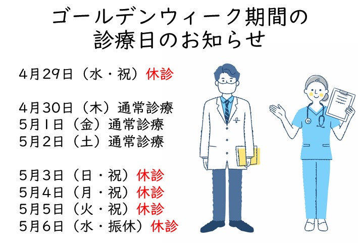 - 休診日:第2, 4土曜・日曜・祝日