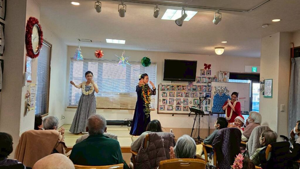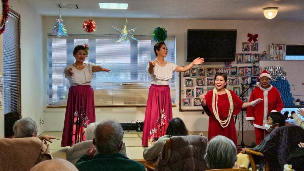 デイサービス グリーンサンガではフラダンスサークル「ハレオハナ」 の皆さまをお迎えし、華やかなフラダンスショーを開催しました。